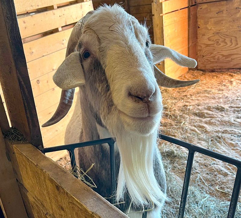 Gilligan is estimated to have been born in 2015 and came to the farm in 2020 with another goat Max. Both of them were in very rough shape, although Gilligan fared a bit better. They came from a neglect situation. Luckily, they both made a full recovery. Gilligan is a big boy and he does not have many manners as he wasn’t handled very much where he came from. He can be a bit rambunctious but he is learning to be a little less rough.