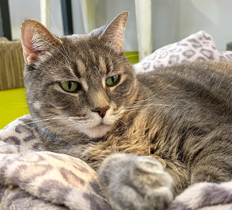 Honeybun was born in 2015 and arrived at the farm shortly after she was born. Her mother died giving birth and Honeybun was bottle raised here by us. Honeybun was adopted out as a kitten and returned when the child in the home was found to be allergic to cats. She was then adopted out again, only to be returned when the people were moving. It is very difficult for animals to be adopted and returned so many times like that. Honeybun makes it clear she is happy right here. She loves to be goofy at times. But she also loves to be in charge of her room. She likes things to go her way and makes sure that they do.