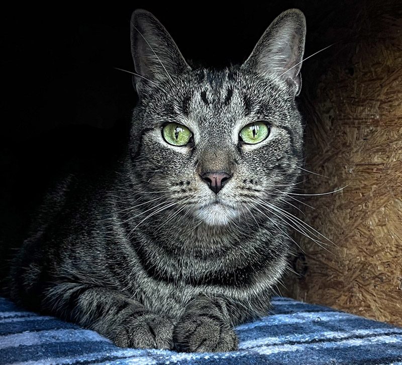 Luau is estimated to have been born in 2019 and came to the farm in 2021 after he and another cat (Tiki) were seen running around a neighborhood in the worst of winter. A good samaritan brought them here on separate days as they were caught in human traps to get them out of the cold. An owner was never found and it is feared they were abandoned. Luau is super friendly but not very confident. We can tell that this whole experience for him was very traumatizing. Luau doesn’t like to leave his pen that we have him in until he feels more confident. He loves people and loves to rub his face all over your legs and hands. He is a good guy who needs to find his footing in life again.