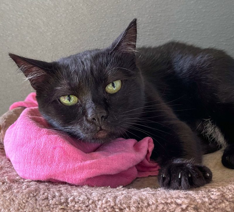 Ned was born in 2012 and arrived at the farm in 2022. Ned’s person was searching out a sanctuary where Ned could live out his life and have his special needs met. It appears Ned was born with a condition called Cerebellar Hypoplasia which causes him to have a lot of balance issues. Animals can live fine with this condition and we have had several in our sanctuary over the years. But Ned also had the complication of a broken back leg that left him somewhat handicapped in his mobility. He cannot leap onto things for example. He is a very small cat and has a huge personality. Ned is rather shy at first but once he settled in he is a complete love of a cat. We will continue to give Ned all that he needs for his orthopedic issues and make any adaptations needed for his neurological condition.