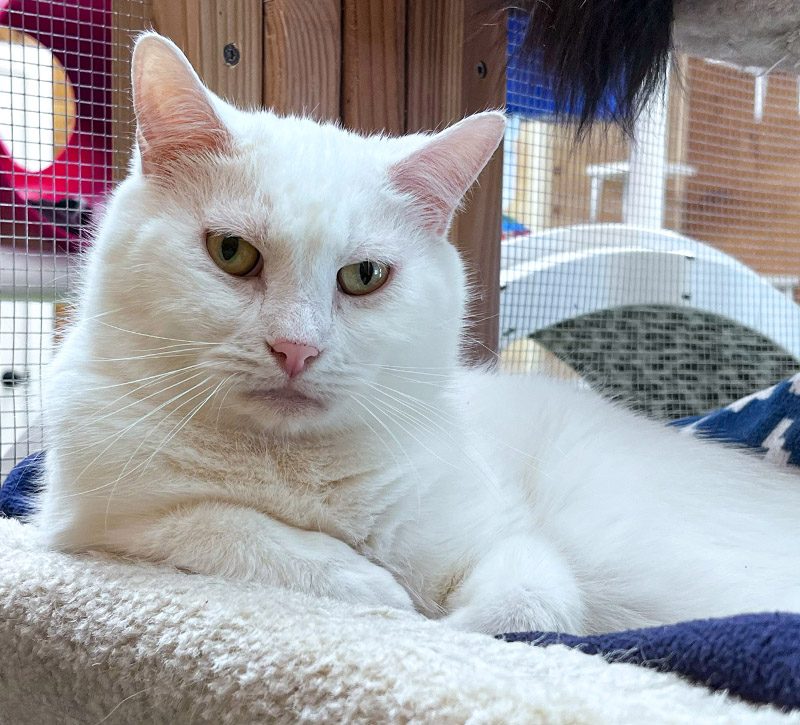 Quincy was born in 2018 and came to the farm as a kitten. He and his three littermates were found abandoned with their emaciated mom. Quincy is very shy and weary of people. He is most fond of hanging out with his cat friends and playing. He is happy with his life but just is not so sure about participating with humans much.