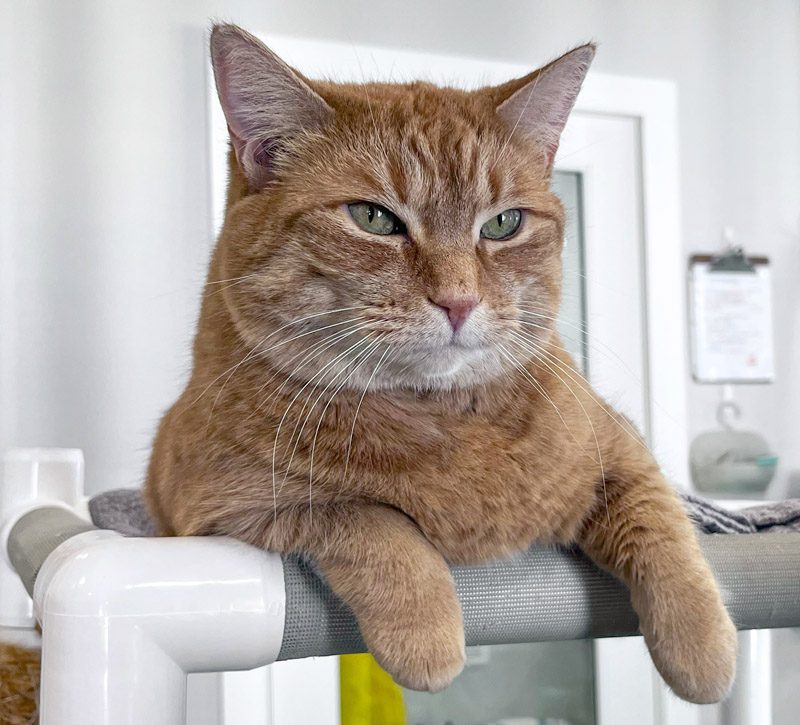 Zoey was born in 2017 and came to the farm as a small kitten. Zoe is very timid at first with humans until she feels more comfortable with them. She is very friendly though once she gets to know you. Zoey enjoys her porch and looking at all the things outside. And she most especially loves her cat friend Hero.