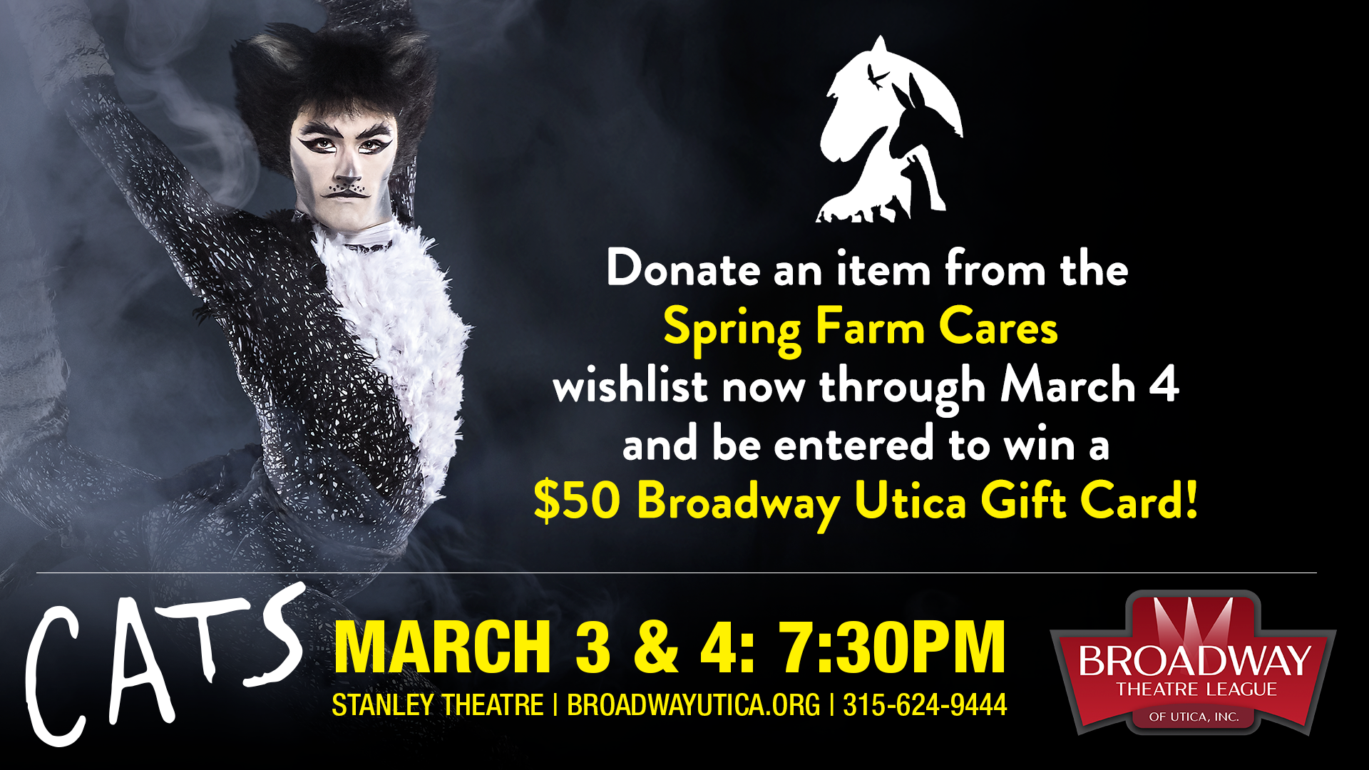 Issues & Communications See CATS at the Stanley Theatre in Utica, NY and help SFC cats too! Thank you to Broadway Utica for your support! February 13, 2020